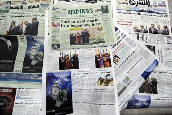 El pacto nuclear, en las portadas de la prensa saudí. / FAYEZ NURELDINE (AFP)