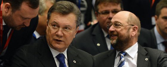 Victor Yanukovich junto al presidente del Parlamento Europeo. / JANEK SKARZYNSKI (AFP)
