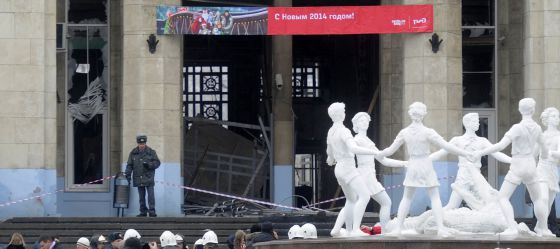La entrada de la estación de ferrocarril de Volgogrado (Rusia), tras el atentado terrorista del domingo. / AP