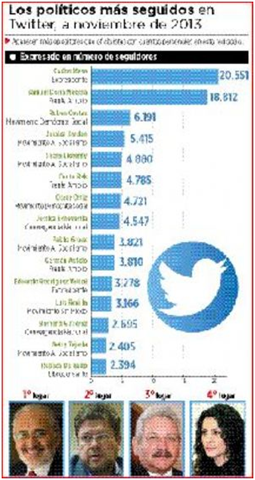 A diferencia de las cuentas personales de los políticos, los partidos y agrupaciones partidarias muestran resultados "marginales” en el número de seguidores en Twitter, lo que demuestra una práctica política no acorde a las dinámicas web, concluye en su blogspot.com, Pablo Andrés Rivero.