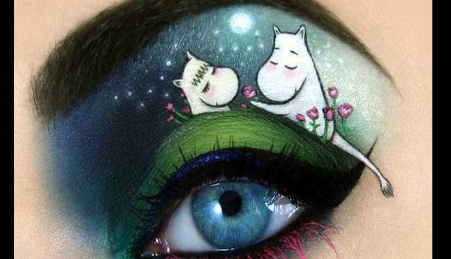 Lima. La maquilladora profesional israelí, Tal Peleg, quiso experimentar con las formas y figuras utilizando como base los ojos de las modelos, para crear espectaculares dibujos como gatos, un lago de patos, un cisne y hasta un campo con ovejas, entre otras tiernas escenas.