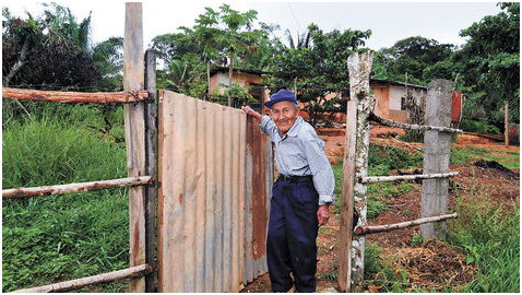 Vivienda. El anciano abre la cerca de su parcela.