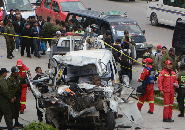 El hecho más trágico fue el ocurrido la mañana de este lunes en la autopista La Paz-El Alto en inmediaciones del sector denominado Trébol, desvío a la avenida Vásquez zona norte de la ciudad. En primera instancia, ocho fallecidos y siete heridos. Mientras dos llegaron a perder la vida cuando se encontraban en terapia intensiva de la Clínica Amid.