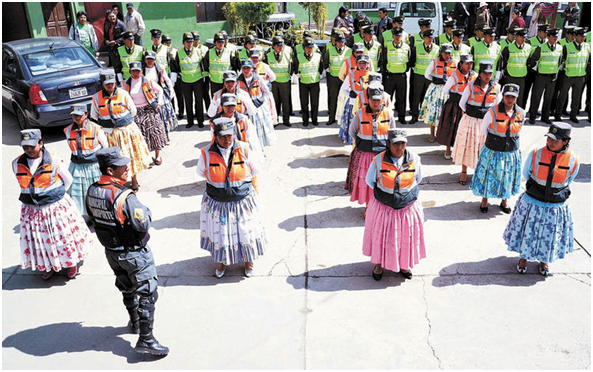 EL ALTO, Bolivia. Las mujeres de la guardia vial son bien vistas por peatones y por choferes. Dicen que les hacen caso y que, incluso, son mejores que los policías, aunque no faltan las críticas.