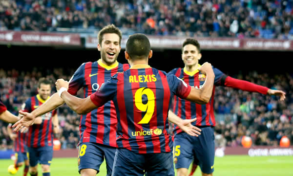 El Barcelona consiguió una goleada en su primer partido de 2014, un cómodo 4-0 en casa sobre el Elche, con un ‘triplete’ del chileno Alexis Sánchez, este domingo en la 18ª jornada, en la que el equipo azulgrana consiguió mantenerse en el liderato.