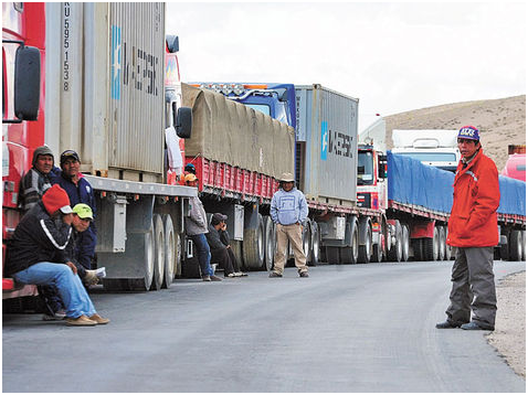 image Transportistas y exportadores de Bolivia, varados en la carretera por el paro de trabajadores en puertos chilenos. Foto archivo La Razón.