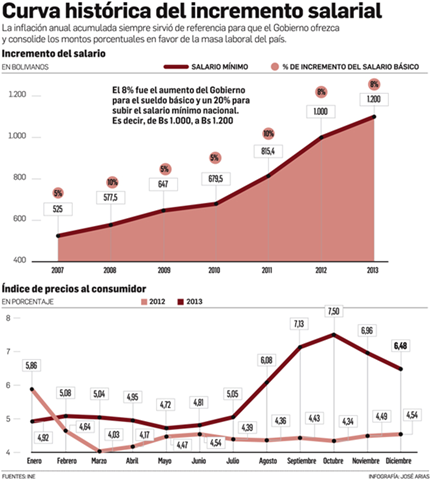 Se debe tener en cuenta el índice de inflación del 6,48%; sin embargo, hay que ver el capítulo de alimentos que está en el orden del 10% de incremento. Entonces, creo que el salario mínimo nacional debiera estar en ese orden (10%) pues las familias pobres son las más afectadas, pues un alto porcentaje de sus ingresos está destinado a la alimentación.