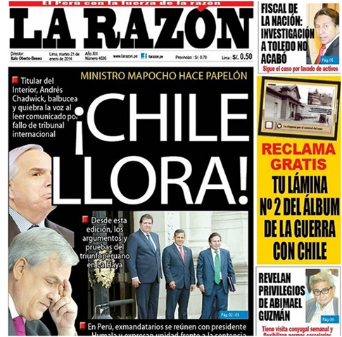 Según diario peruano en referencia al próximo fallo de La Haya, por el diferendo marítimo entre Chile y Perú.