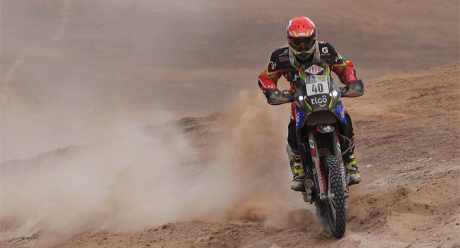 Este viernes se corrió la penúltima etapa del Dakar, entre El Salvador y La Serena. El piloto boliviano, Juan Carlos Salvatierra recorrió los 349 kilómetros de especial con un tramo de dunas de 120 kilómetros, en 4h31’20’’, ocupando el puesto 15. El ganador del tramo fue el francés Cyril Despres, que no se da por vencido para conseguir su cuarto título.
