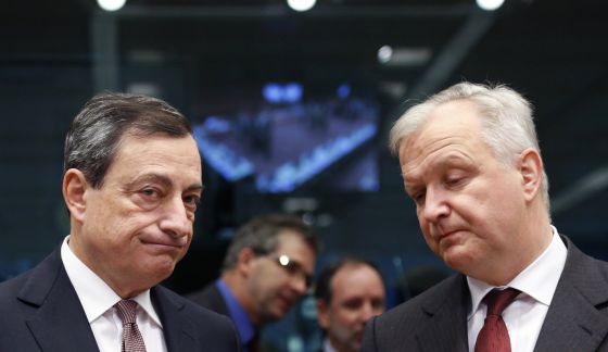 Mario Draghi junto al comisario de Asuntos Monetarios, Olli Rehn. / F. L. (REUTERS)