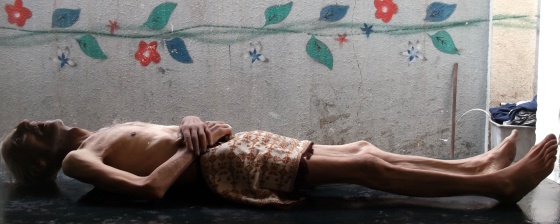 El cuerpo sin vida de Awad al-Saidi, que falleció por hambre, según residentes de Yarmuk en Damasco. / AP