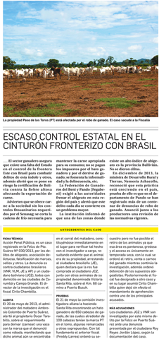 Al respecto, el ganadero afectado Óscar Fidel Tarabillo y su abogado Juan Pablo Peña, calificaron de ‘vergonzosa’ la actuación del fiscal Chambilla pues no tomó en cuenta las investigaciones de su antecesor, como el allanamiento a la propiedad Victoria–Santa Rita, en el que se encontraron los animales robados, con su marca, además de los fierros con los que se remarca el ganado, cuero de bovinos ya carneados y armas de fuego; tampoco valoró que los empleados de esta propiedad declararon que existían más animales pero que ya fueron vendidos o trasladados a Brasil.