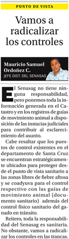 El ganadero Luis Ernesto Áñez, dueño de la agropecuaria El Espinal, aseguró que no existe ningún control en la zona y que los productores tienen que esforzarse contratando más gente e incluso policías.