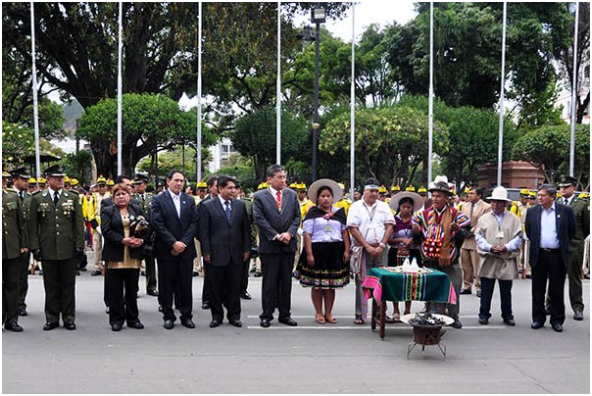 * Al acto que se inició en la plaza de Sucre, con una ofrenda a la Pachamama, asistieron los presidentes del Tribunal Supremo de Justicia, Gonzalo Hurtado; del Tribunal Constitucional, Ruddy Flores, el fiscal General del Estado Ramiro Guerrero, el gobernador de Chuquisaca, Esteban Urquizu, el alcalde de Sucre Moisés Torres Chive y otras autoridades.