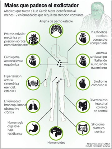 Infografía: García Meza tiene 12 males; lleva 4 meses en el hospital