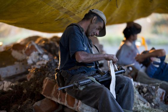 Un miembro de las autodefensas de Michoacán limpia su arma. / Eduardo Verdugo (AP)