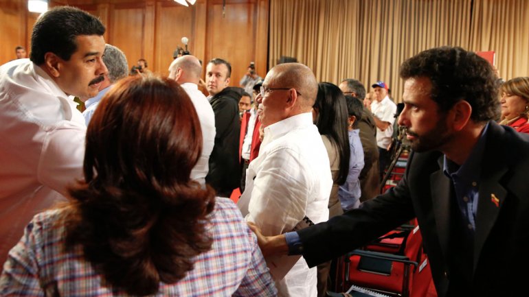 El jefe opositor Henrique Capriles fue unao d elos primeros en llegar a la cita al palacio de Miraflores. Ustedes conocen muy bien cuál es mi posición, el país la conoce, en lo político; ahora, frente a la inseguridad, frente a la violencia yo converso con el que sea y estoy dispuesto a trabajar con quien sea", aseguró el Gobernador de Miranda no bien llegó .Antes de que comenzara la reunión, Maduro se acercó y saludó al antichavista.
