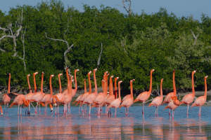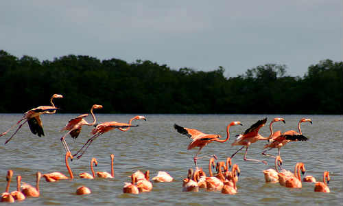 Ría Lagartos, (2004). En Yucatán se encuentra este bello lugar de manglares que, es punto de encuentro para el flamingo, en cuya época de anidación reúne hasta 43 mil ejemplares. En sus aguas alberga moluscos, crustáceos y peces.