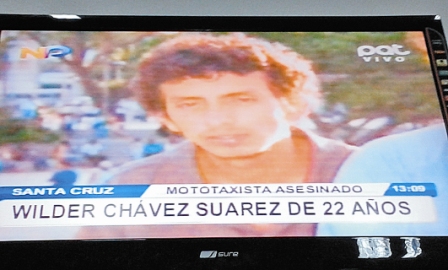 Perdió la vida trabajando. Wilber Chávez trabajaba como mototaxista. Este joven, de 22 años de edad, era soltero y con frecuencia manejaba su moto hasta altas horas de la madrugada en busca de pasajeros. Diana Roca, tía de la víctima, informó a los medios de comunicación que su sobrino llegó en su moto hasta una rockola ubicada sobre el 7mo anillo de la avenida Virgen de Luján, zona del Parque Industrial, aproximadamente a las 1:30 de la madrugada, donde se detuvo a esperar algún pasajero. “Dicen que de la rockola salió un muchacho corriendo que se subió en su moto y tras de él otro con un cuchillo y apuñaló directamente a mi sobrino”, comentó Diana, que ayer acompañaba a sus hermanas y familiares del fallecido en la morgue del hospital San Juan de Dios, donde se practicó la autopsia de ley.