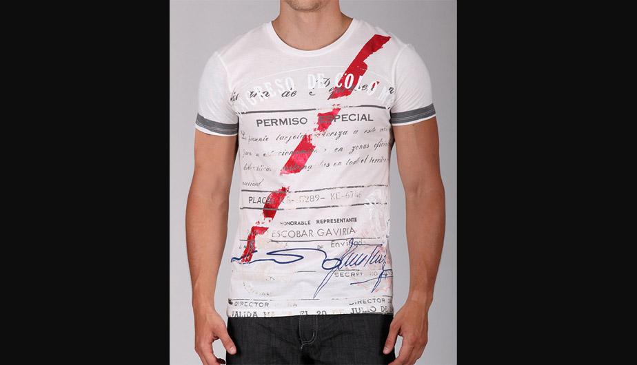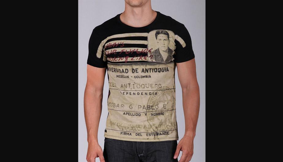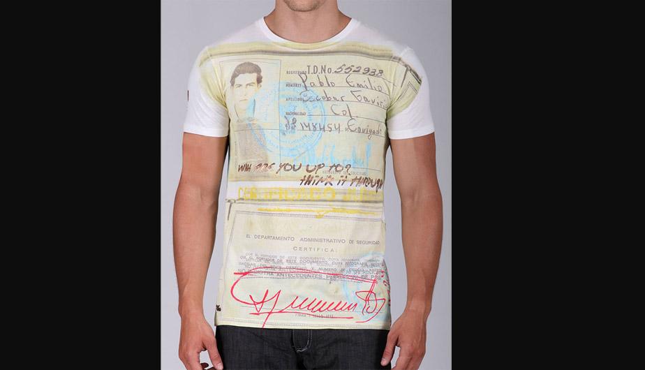 Documentos originales de Pablo Escobar, fotos y su huella dactilar aparecen en las remeras de la colección “Poder Poder”, una creación de Sebastián Marroquín.