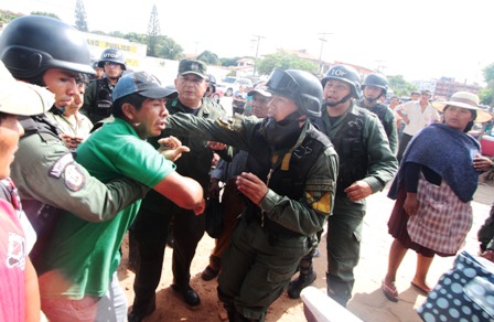 Agresión. Ayer, en una audiencia que se desarrolló en las instalaciones de la Fuerza Especial de Lucha Contra el Crimen (Felcc) el juez Moisés Chaille, dispuso la detención preventiva de Venerable Huanca, acusado de liderar un grupo de loteadores.