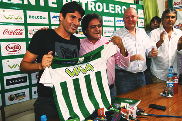 El momento en que José Ernesto Álvarez y su directorio anunciaban la vuelta de Raldes. Foto: Rodrigo Urzagasti