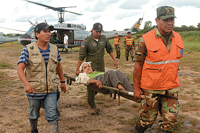 El ministro de Defensa, Rubén Saavedra, informó que las Fuerzas Armadas ejecutan el plan de contingencia Turbión 001, que contempla movilización de tropas para la evacuación de las familias afectadas hacia el predio de FexpoBeni y a las escuelas municipales de la capital