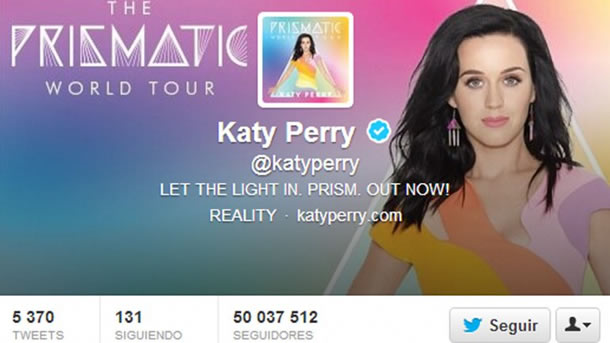 La estrella del pop, que saltó a la fama en 2008 con temas tan pegadizos como «I kissed a girl» y ahora está en lo más alto de todas las listas con el sencillo «Dark Horse», tuitea a menudo para sus fans, 5.370 mensajes hasta el momento, aunque sólo sigue a 130 personas.