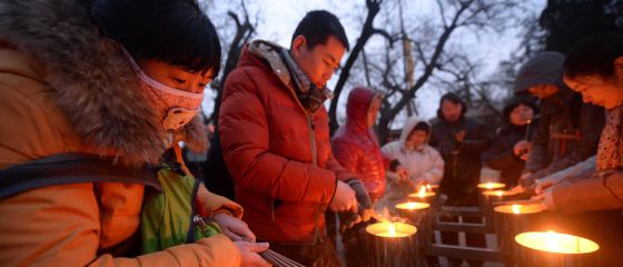 Un grupo de chinos reza en el templo Yonghegong Lama con motivo del año nuevo lunar en Pekín. / STR (AFP)