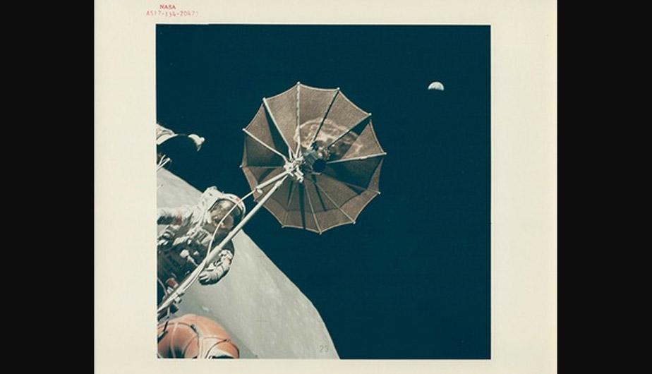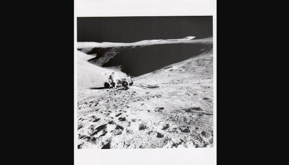 Harrison Schmitt, Eugene Cernan y la antena del explorador lunar, con la Tierrade lejos. Apollo 17, 1972. (Foto: NASA) (8 de 10)