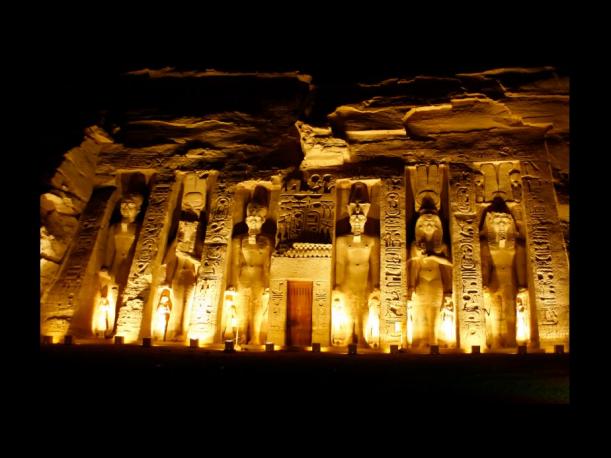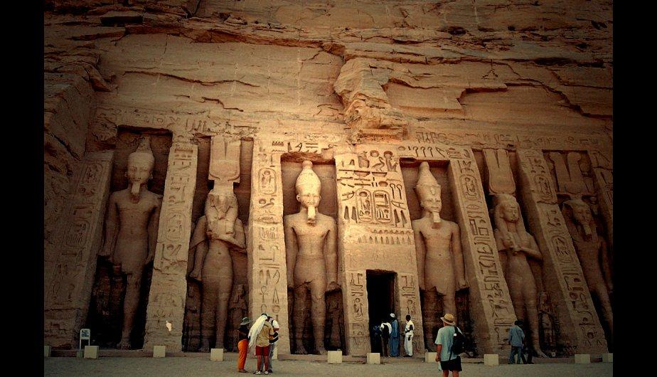 Egipto. Durante el siglo XIII a.C., el faraón Ramsés II ordenó excavar templos en la roca en honor a él, a su esposa Nefertari, y a las deidades Amón, Ra y Ptah. Hoy día, estos templos se reúnen en el emplazamiento de interés arqueológico llamado Abu Simbel, visitados por millones de turistas alrededor del mundo.