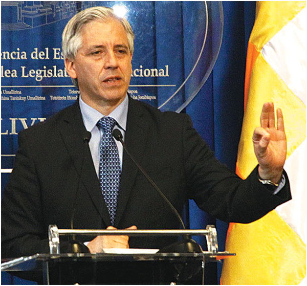 Es una nerviosa exposición, el vicepresidente García Linera ha especulado sobre su inocencia, la de su hermano y de varios ministros y viceministros del MAS que están involucrados en actos de corrupción.