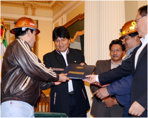 Lunes 17 de marzo de 2014. Presidente Morales recibe el anteproyecto de la ley minera en Palacio de Gobierno. (ABI).