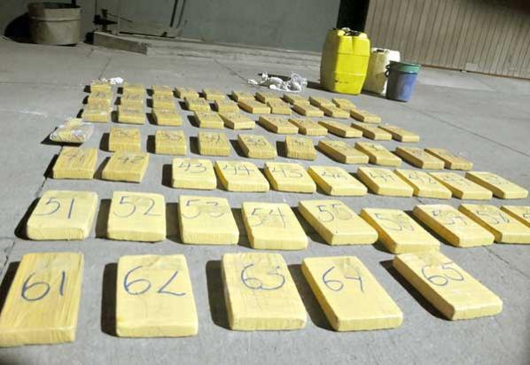 Sesenta y cinco paquetes de cocaína fueron descubiertos ayer por la tarde dentro de un camión secuestrado por agentes de la Fuerza Especial de Lucha Contra el Narcotráfico (FELCN), informó ayer el director de esta institución, coronel Julio César Velásquez.