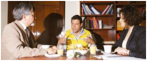 El alcalde de La Paz, Luis Revilla (centro), con periodistas de Página Siete.