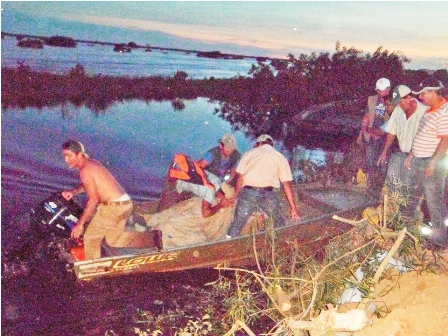 Ref. Fotografia: Siniestro. El momento en que el cuerpo de la víctima es trasladado por agua.