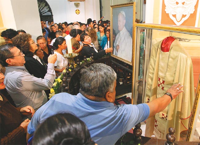 La gente acudió a la catedral a ver y tocar la casulla que el papa Juan Pablo II usó y dejó de regalo