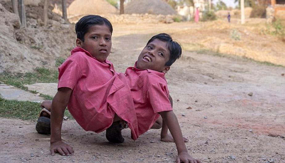 La pareja, que nació en un pequeño pueblo cerca de Raipur, en el centro de la India, comparte dos piernas y cuatro brazos, y deben trabajan en conjunto para realizar sus actividades con cierta normalidad.