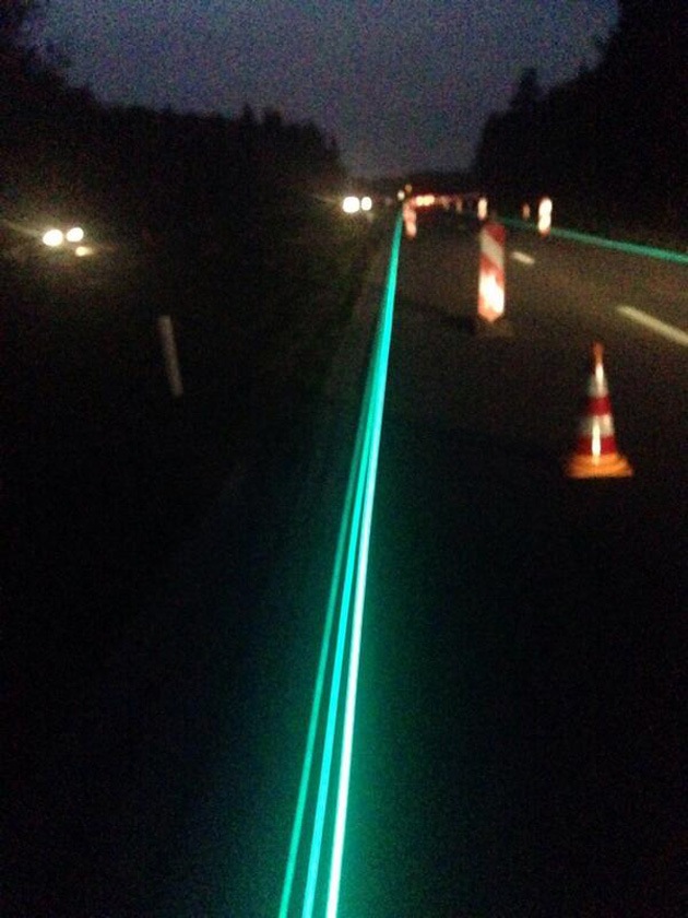 La marcación tiene un brillo lo suficientemente fuerte, "es casi radiactivo", comenta el diseñador Daan Roosengaarde, a quien le gustaría seguir adelante con el proyecto tras saber cómo se comporta la pintura en el uso cotidiano.