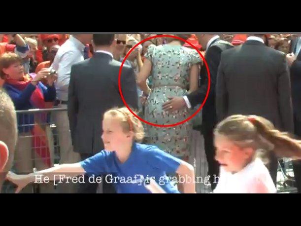 De Graaf caminaba cerca a la soberana holandesa, quien saludaba efusivamente al público que se había reunido para poder verla. En uno de esos ajetreos, la autoridad pasó su mano por la cintura de la reina y sin más ni más bajó su mano hasta llegar a una de sus nalgas.