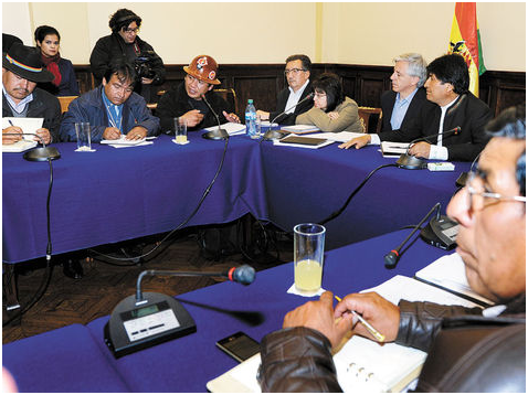 Salarios. El lunes, el presidente Evo Morales y la dirigencia de la COB llegaron a un acuerdo. ABI.