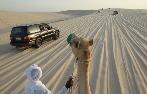En la polvorienta planicie del oeste de Doha, en Umm Al Afai -conocido como el lugar de las serpientes- Ali al Jehani me convida una taza de leche de camello recién ordeñada.