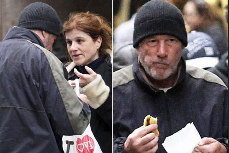 ridchardgereUna turista francesa vio a un hombre que parecía un mendigo que rebuscaba en un cubo de basura en una calle de Nueva York y no dudó en ofrecerle un trozo de pizza, sin darse cuenta de que se trataba de Richard Gere en pleno rodaje.