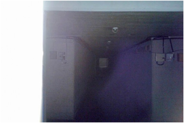 En la misma foto tomada en secuencia sin movimiento, se ve una sombra. Es en los camarines de los árbitros. Foto Mónica Oblitas, Los Tiempos.