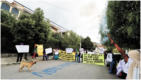 La Paz. Socios de la quebrada Cooperativa San Luis protestan en puertas del complejo atigrado, en diciembre de 2013. Miguel Carrasco-Archivo.