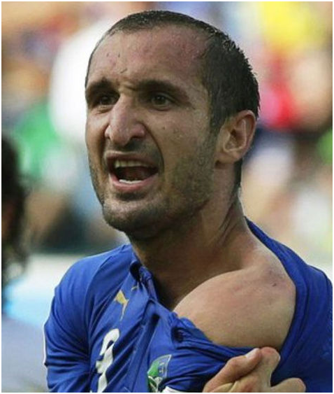Gorgio Chiellini, luego del mordisco de Suárez. Foto: www.novinite.com