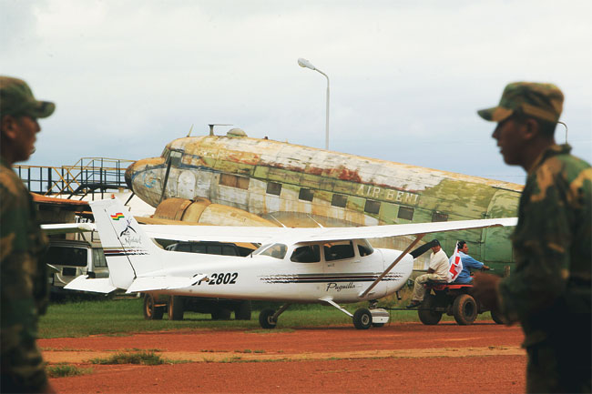 Autos, motos, chatarra y avionetas. El aeropuerto de Riberalta esparte de la calle. Foto: JORGE UECHI