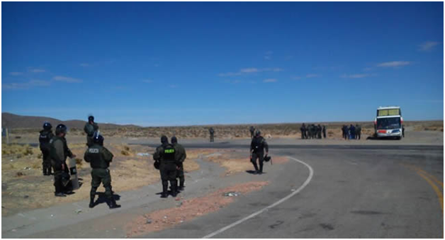 El periodista de EL DEBER, Miguel Melendres, reportó este miércoles desde Huanuni que un contingente de 50 policías ha llegado hasta ese lugar para evitar el corte de la ruta. Para la vocal Chuquimia, los pobladores de esa región en lugar de realizar medidas de presión deberían estar preocupados en elegir a quienes van a representar a las circunscripciones.