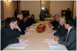 El vicepresidente Álvaro García Linera preside una reunión con el Delegado para la causa marítima y ex cancilleres (ABI)