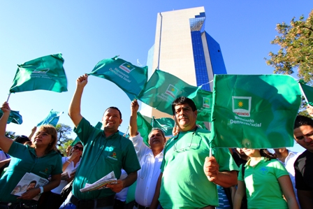 Campañas. En tanto ayer por la tarde dos partidos políticos aprovecharon para salir a las calles en busca de votos de la población cruceña.